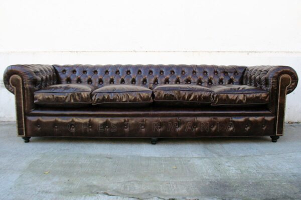 Sofá Chesterfield 4 cuerpos en cuero vacuno gastado